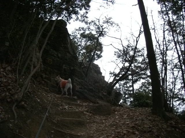 私がスタスタと男坂への分岐を上がり始めると・・・なんと空!嫌がって歩きません!