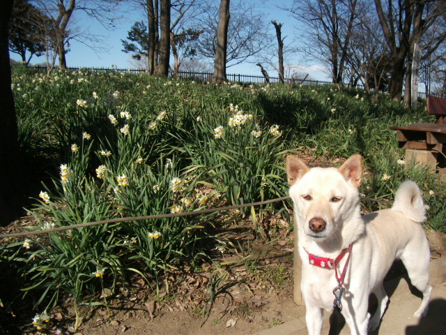 で、前回暗くなっちゃって見そびれた水仙のお花を見ようと会社の帰り道に清瀬の金山緑地公園へ寄り道。