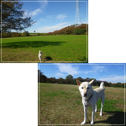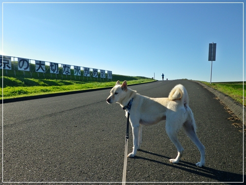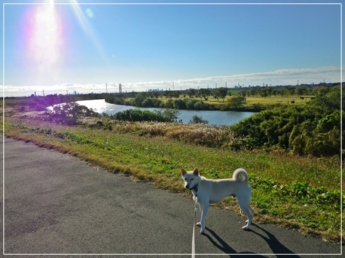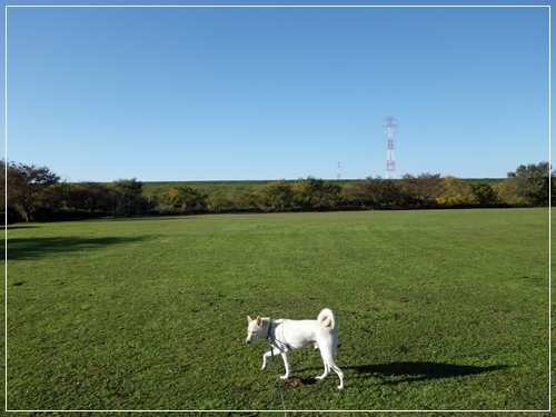 前の晩は雨でお散歩に行けなかった空なので今朝は元気にはりきって歩いています^^