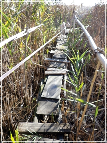 湿地のこんな道なき道だって、元気に元気に一直線~~!!