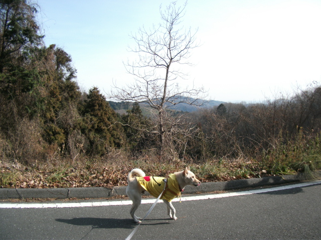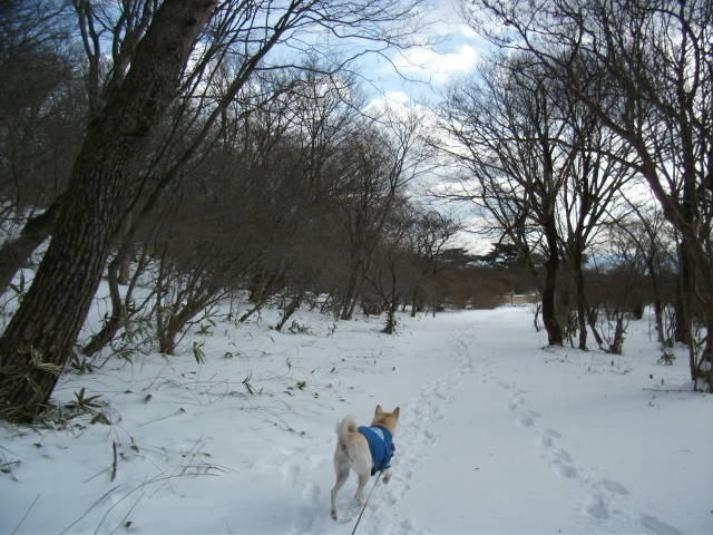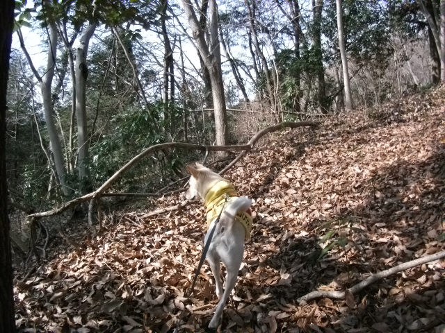 落ち葉がいっぱいの冬枯れの道を楽しく上がっていきました。