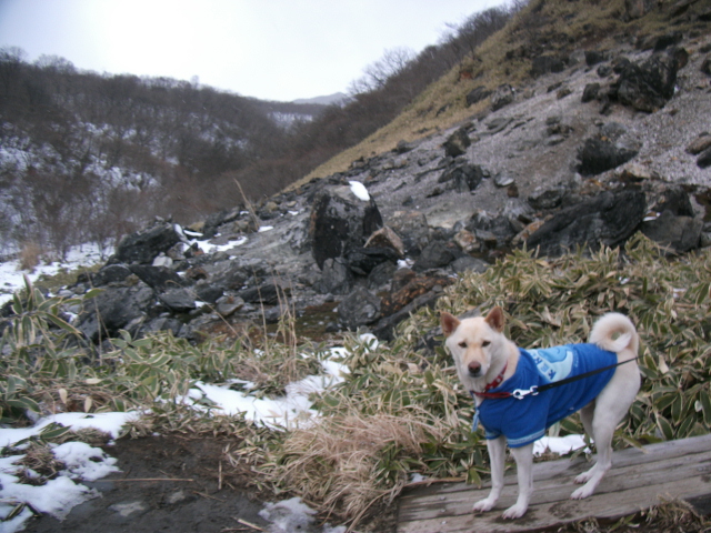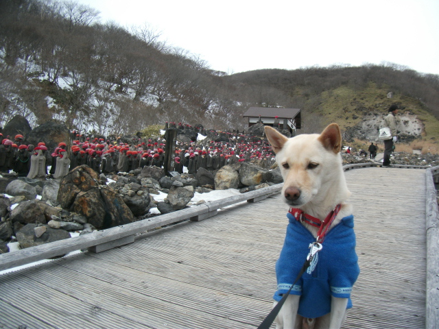 そして殺生石まで降りてきました^^ここまで降りてくると雪はほとんどありませんねぇ。