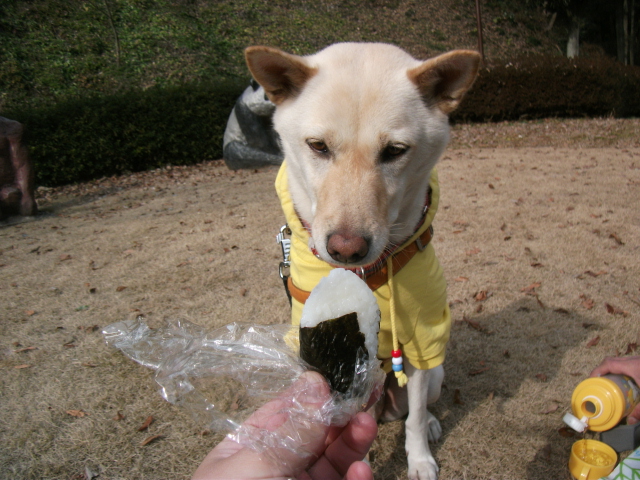 空もおにぎりひとつと頑張って歩いたご褒美にクッキーです♪