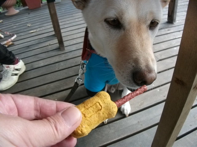空にはリキちゃんにもらったクッキーとジャーキーをあげてみたけど