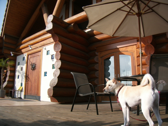 那須の別荘も同じような太丸太のログだけど、こっちは白い壁がきれいでまたちょっと雰囲気が違うなぁ~
