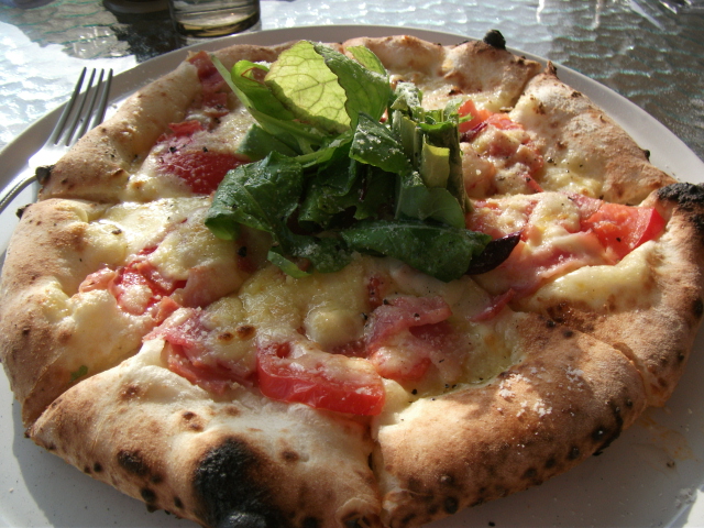 フレッシュトマトとルッコラのピザ。もちろん石釜で焼いたものですよ~