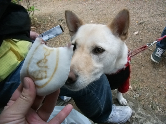 ごめんね~ワンコご飯はないから、空にはフードと小麦市場の自家製パンをちょこっとだけね^^