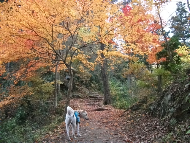 赤い落ち葉がいっぱいで散策路まで赤くピカピカに光っているようでした。