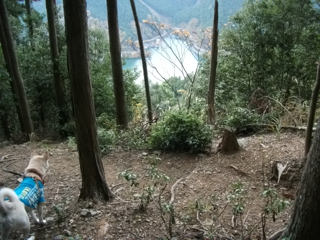 急な山道をどんどん歩いて尾根道に出ました。裏側にある名栗湖がとてもよく見えます^^