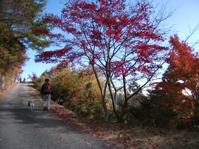 秩父御嶽神社まで真っ赤に色づいた紅葉の下を義父母を気遣いながらのんびり歩きます。