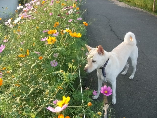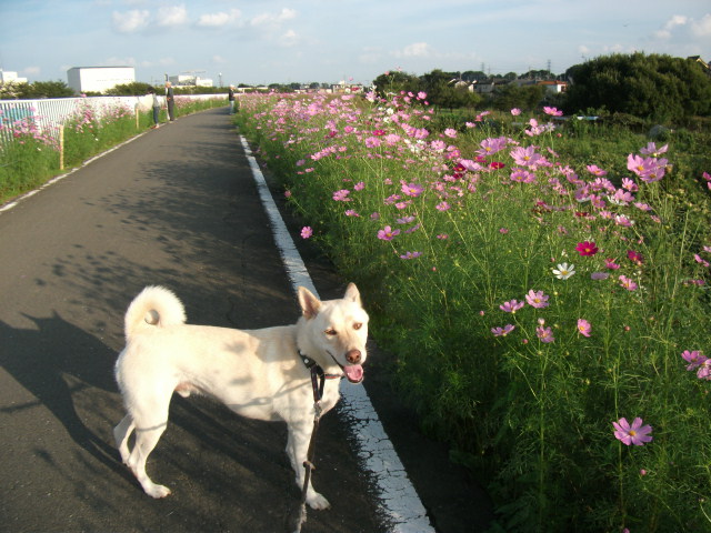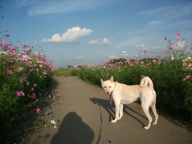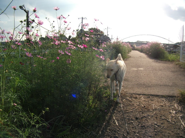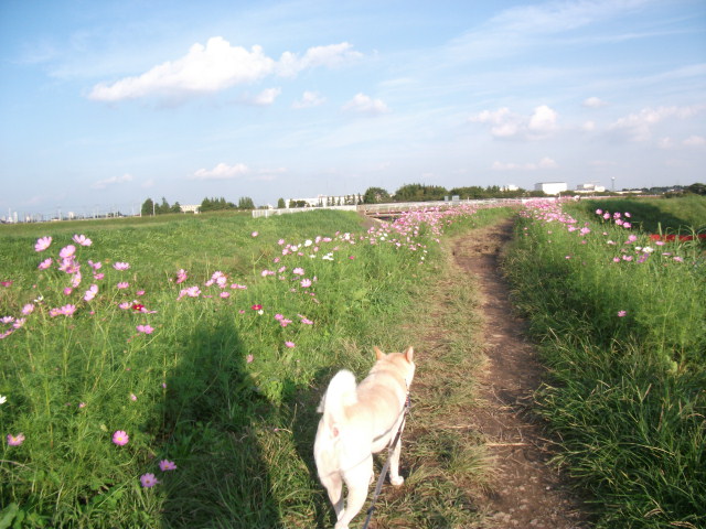 もうそろそろ歩けるかな~~と久し振りに来てみると、すでにコスモスがいっぱいでした♪