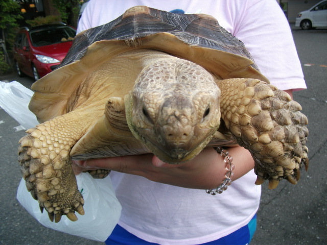 空に吼えられてもお構いなしで意外に早いスピードでテクテクお散歩してたリクガメちゃんでした
