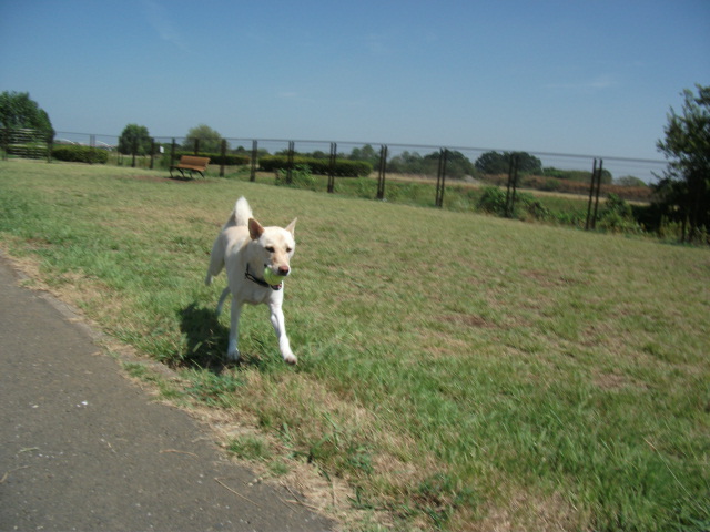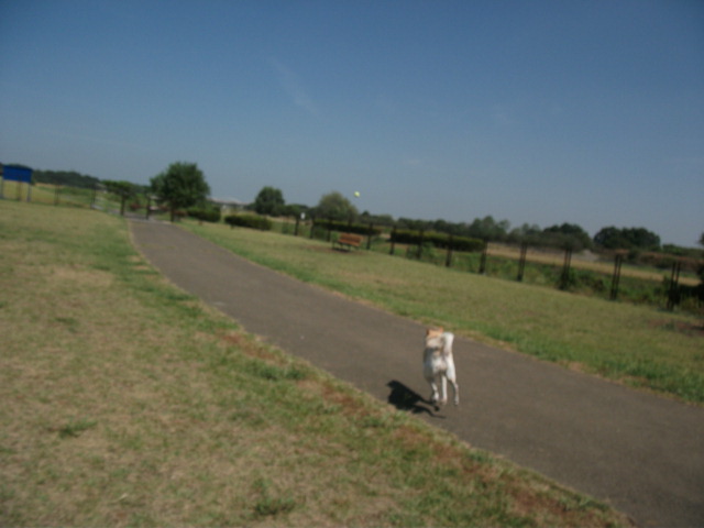 まずはドッグランでボール投げをして