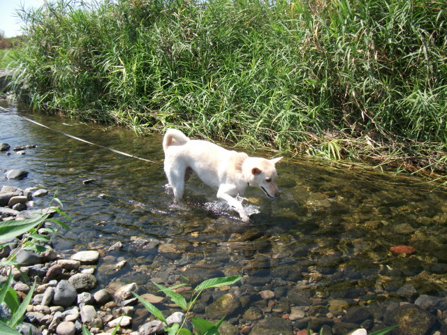 ドッグランは早々に終了して、空は誘われるように川へ向かって歩いていきます。