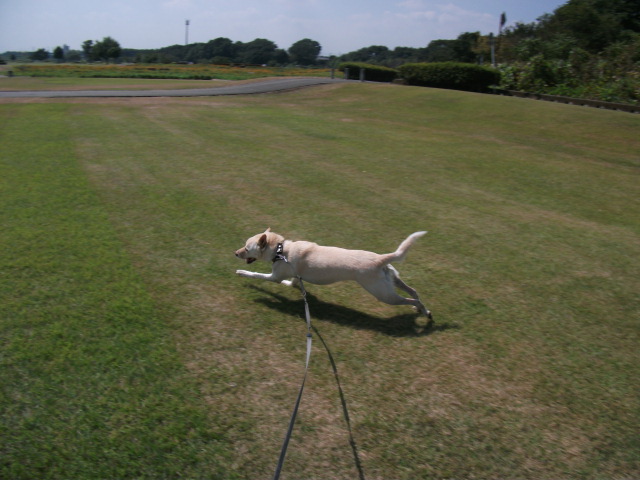 嬉しくて嬉しくて我先にとダッシュ! ロングリードをめいっぱい伸びちゃいます^^