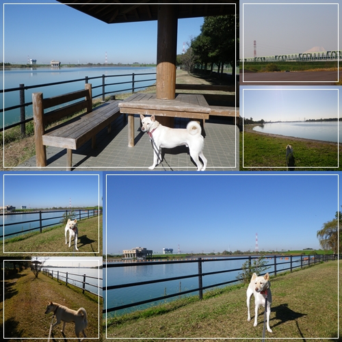 ロングなお散歩ができるコなら、さくら草公園から水門の上を渡って、