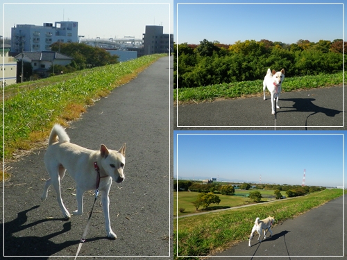 (ホントの空はこんなに白くないんです…)空は嬉しそうに日差しを浴びて歩いてましたけどね。