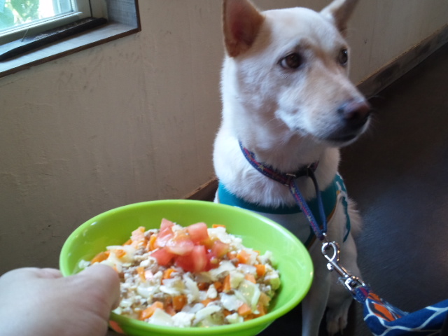 涼しかったからかな~空も食欲モリモリ!自分のは一気に平らげて、