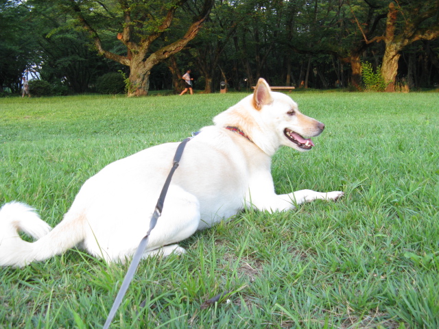 夕方はなるべく木陰や芝生のある公園に来ています^^