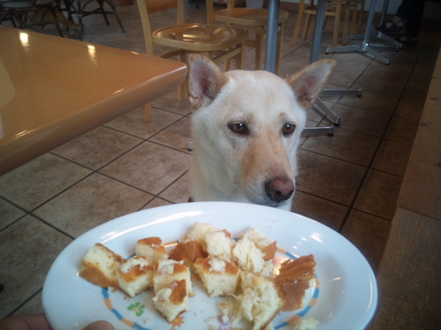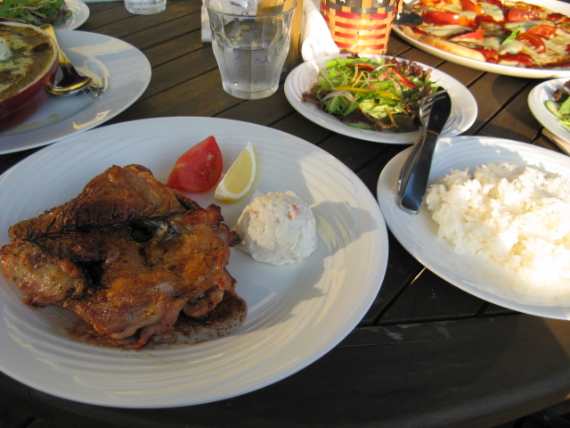 犬たちを遊ばせた後にやっと遅い遅いランチの時間・・・