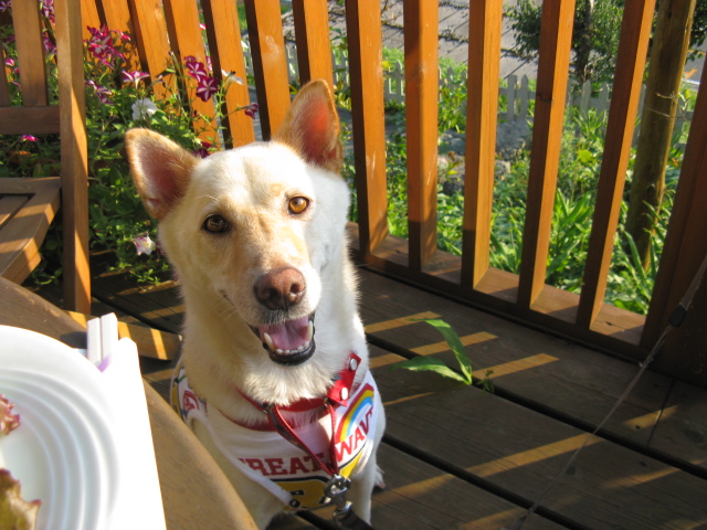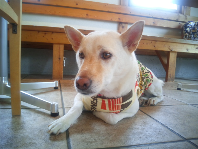 早く食べたいけど「待て!」なので、そっぽ向いて頑張って待ちます♪