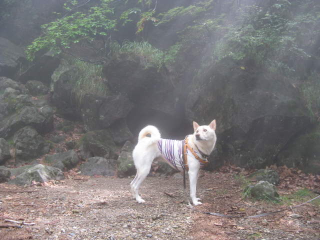 ここがオンマ谷風穴。かなり強い冷気が噴出!極楽~ 空もハァハァしてないよ