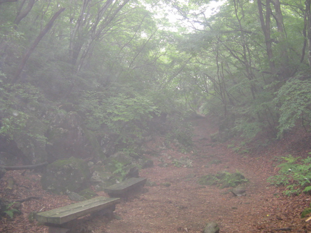 雌岳に上がる道はこんな木の階段。