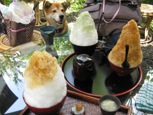 席に案内された頃には雨はすっかりやんで、セミもジージー鳴き出して、カキ氷日和のお天気に変わってくれました。