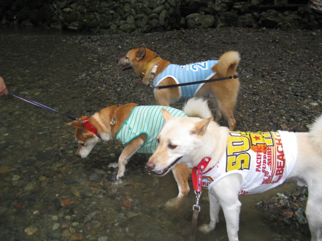 りくちゃんはママにおやつで釣られながら浅瀬でちゃぷちゃぷ。