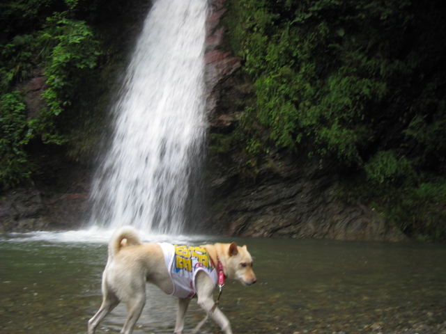 やっぱりだ~れもいない(嬉) 滝壺は3ワンの貸切りで~す!