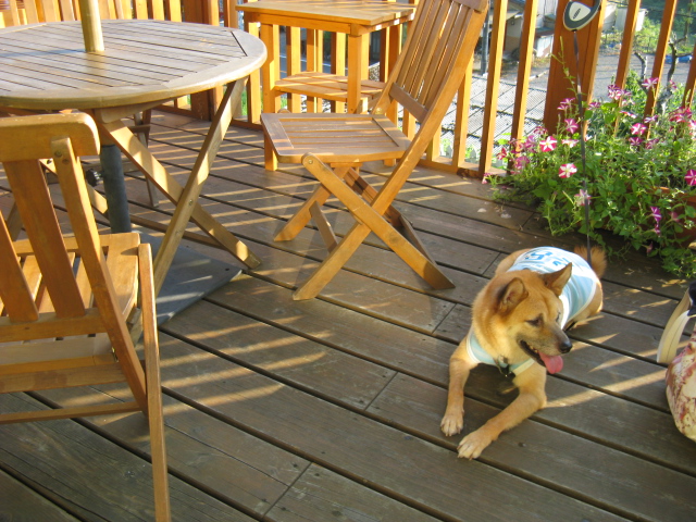 休日の昼頃はいつもテラスが満席で入れなかったんだけど、この日は平日のこんな時間だったから客は私たちだけで、3ワン一緒でものんびりくつろげました。