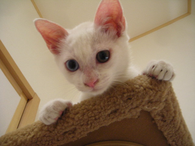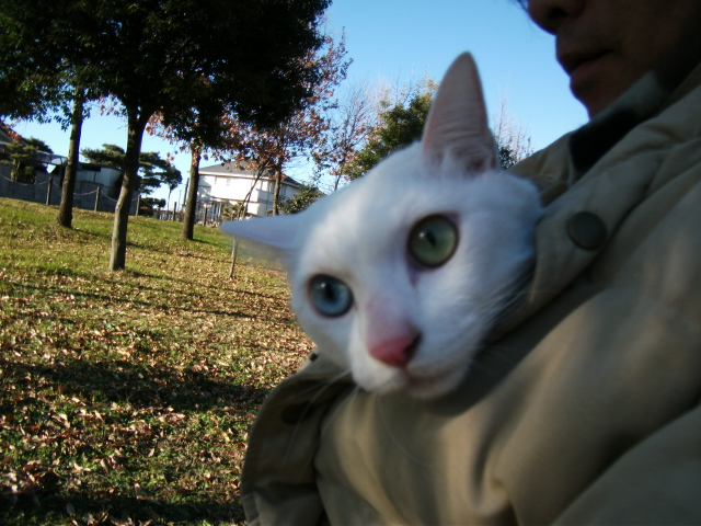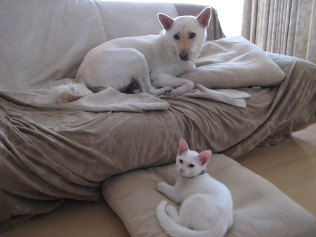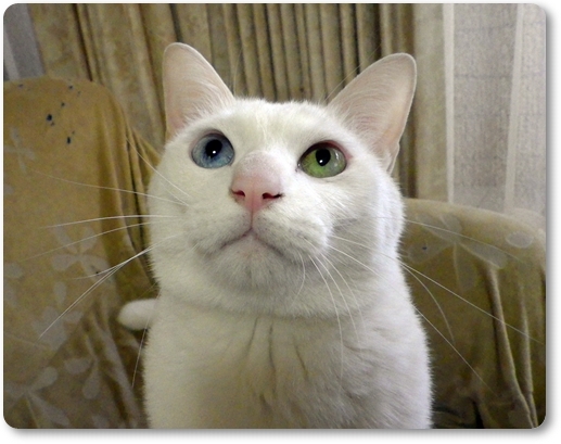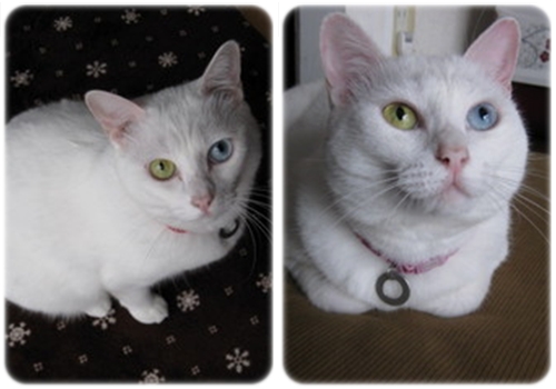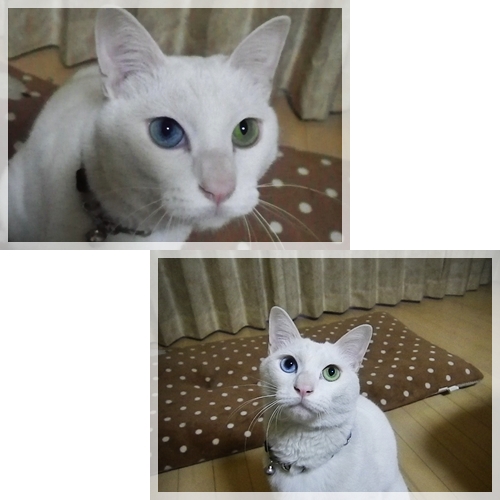 向かって右側の目が青いのは、そうです、リキ家のちまちゃんと同じでしょ!!