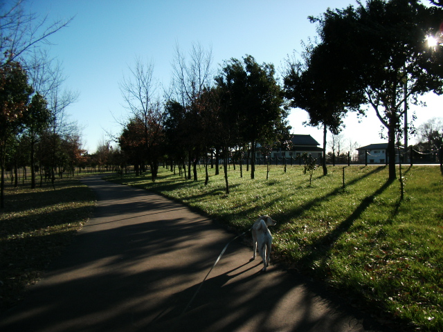 空は大好きな公園にロングリードいっぱい伸ばして悠々歩いています。